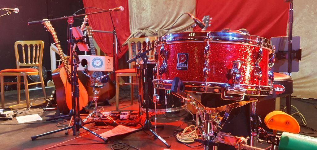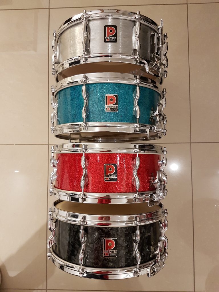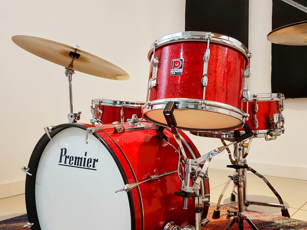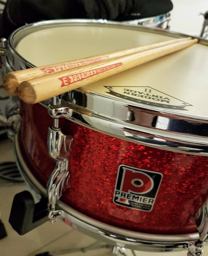 In 2016, I acquired a matching red sparkle drum kit from a collector, and have since used the kit in my home studio. It rarely comes out for live gigs these days, as I have since acquired other snare drums, which I think are more suited to a live performance situation, although there may be a project coming up in late 2025, which I may bring the red sparkle out for again – stay tuned!